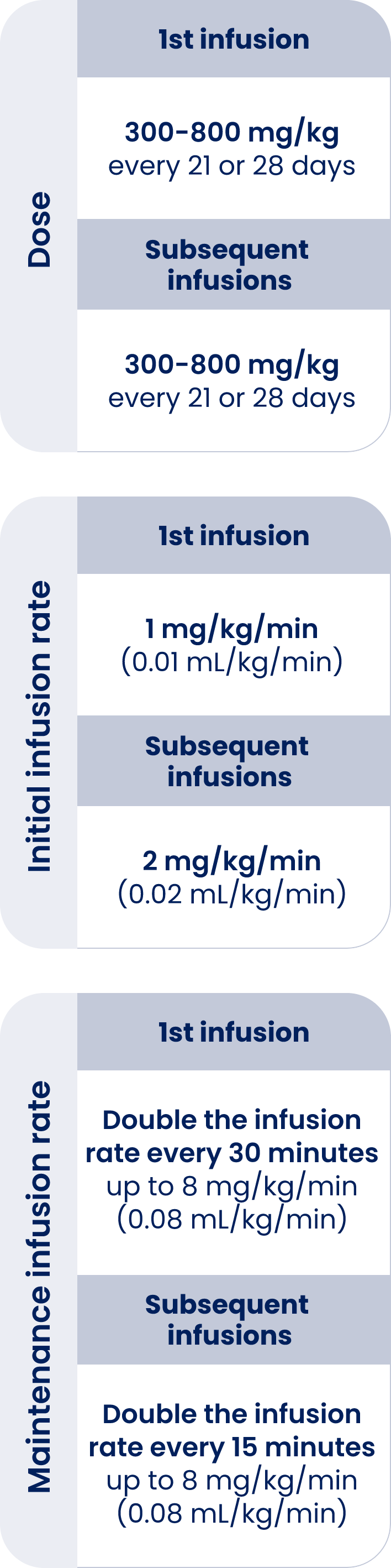 ALYGLO is infused every 3-4 weeks administered by a nurse in the patient’s home or at an infusion clinic.